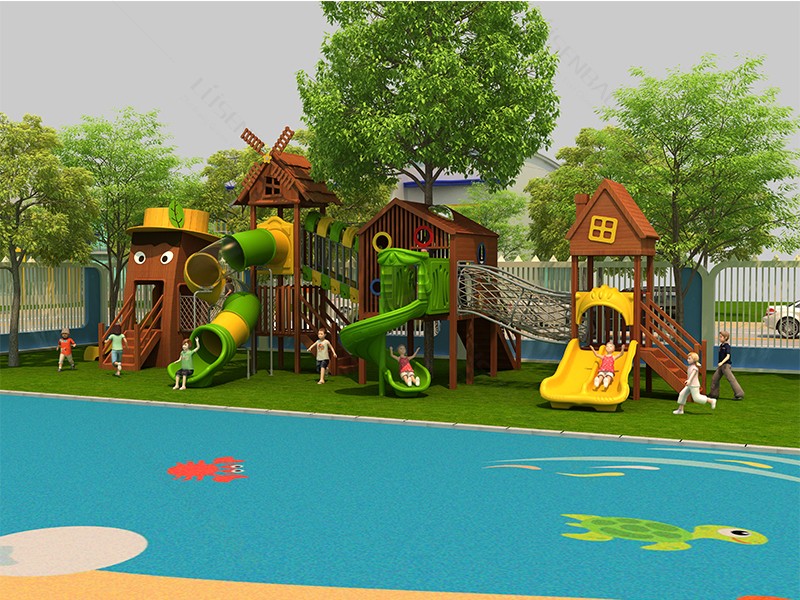 兒童戶外木質滑梯炫彩童年組合滑梯