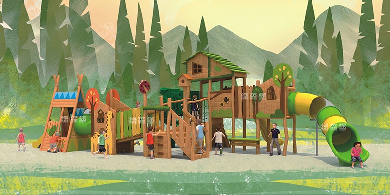 炫彩童年造型滑梯幼兒園戶外木質(zhì)滑梯-綠森堡