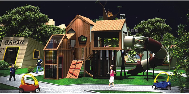 幼兒園滑梯,戶外木制拓展設備,造型木屋