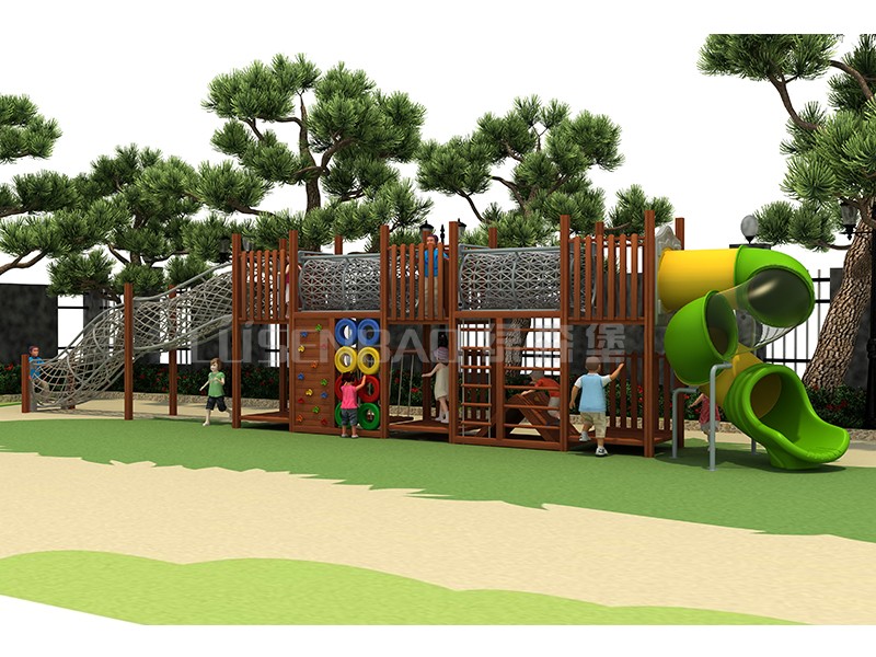 兒童戶外木制拓展游樂設備原木海盜船組合滑梯