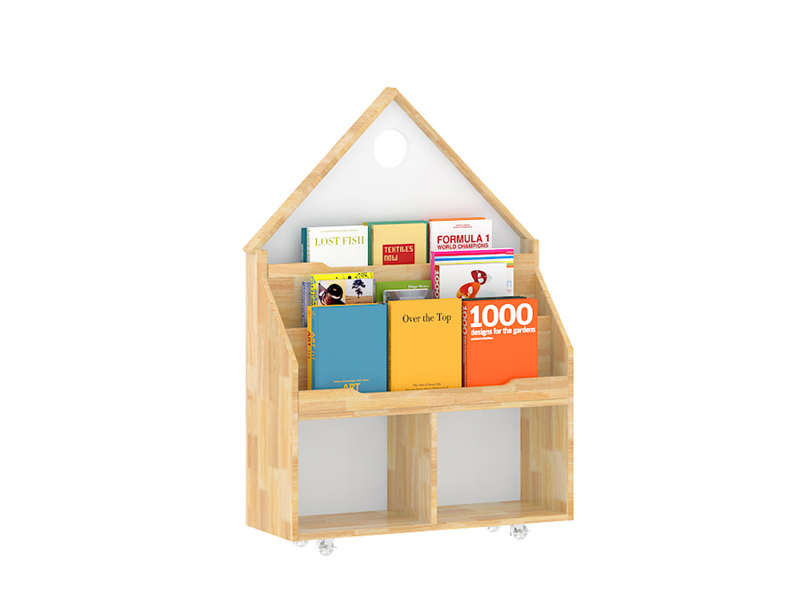 幼兒園家具美術室實木移動書架